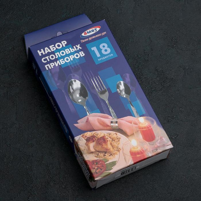 Набор столовых приборов «Славяна», 18 предметов, толщина 1,2 мм, картонная коробка, цвет серебряный
