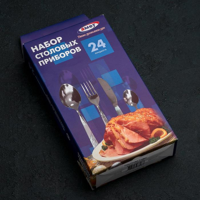 Набор столовых приборов «Славяна», 24 предмета, толщина 1.2 мм, цвет серебряный