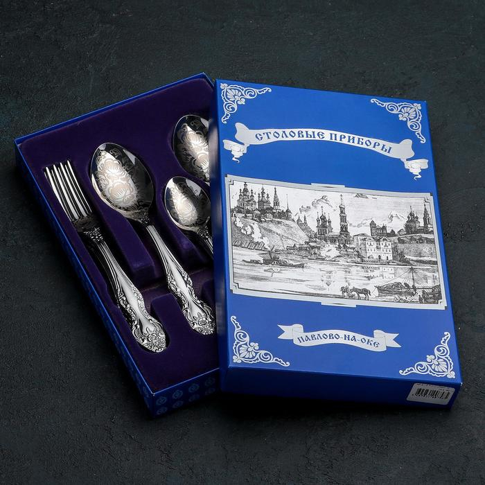 Набор столовых приборов «Тройка», 18 предметов, художественная роспись, картонная коробка
