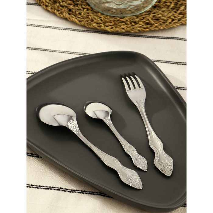 Набор столовых приборов «Тройка», 18 предметов, картонная коробка, цвет серебряный