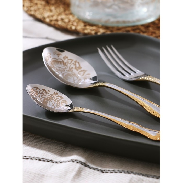 Набор столовых приборов «Тройка», 18 предметов, толщина 2 мм, художественная роспись по нитрид-титановому покрытию