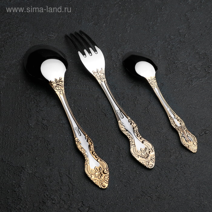 Набор столовых приборов «Тройка», 18 предметов, толщина 2 мм, локальное нитрид-титановое покрытие