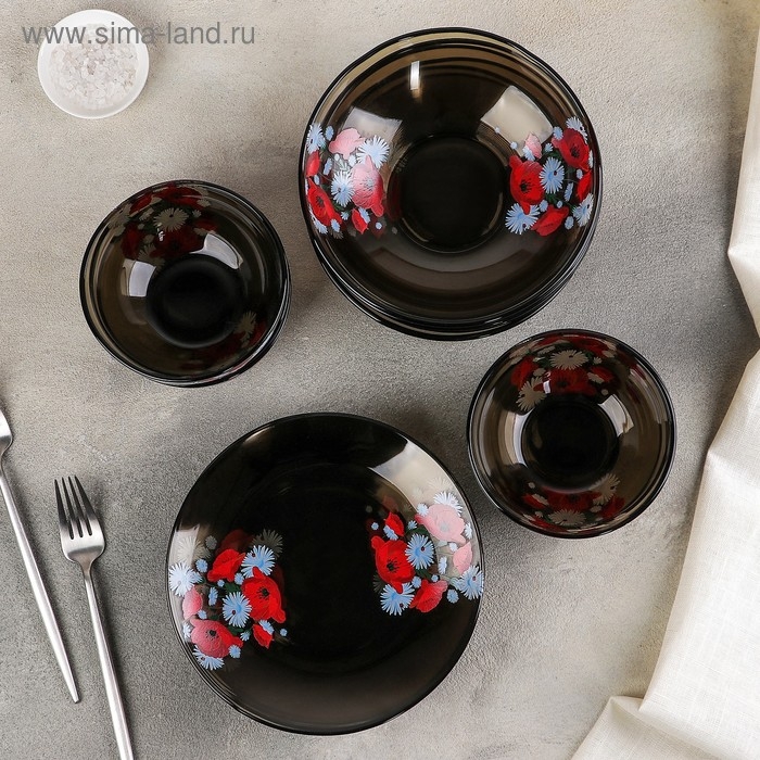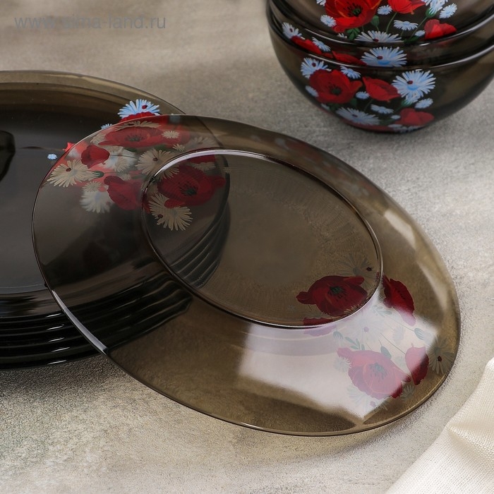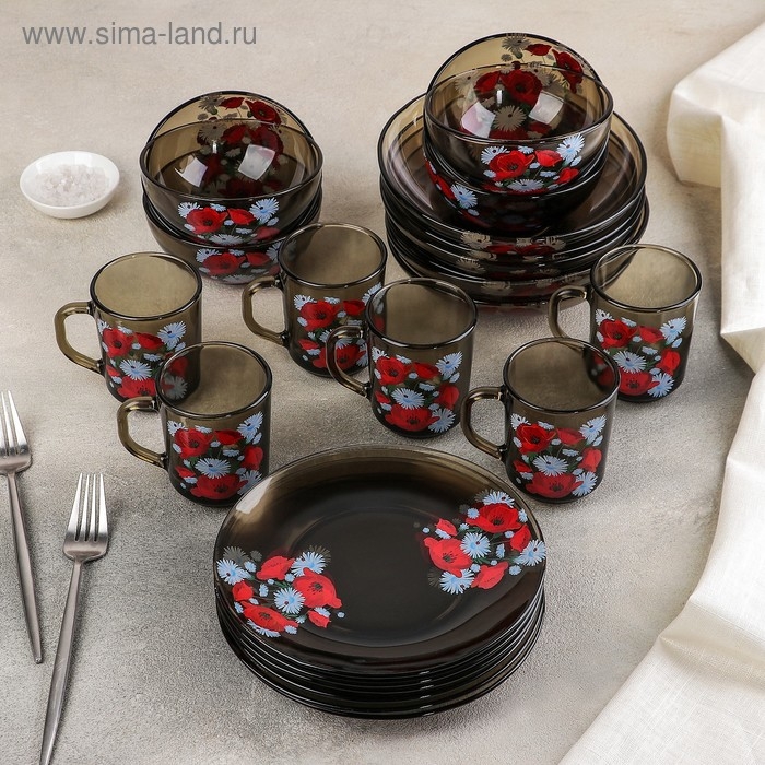 Набор столовый «Маки», 24 предмета, цвет коричневый