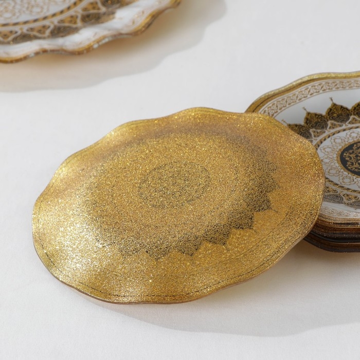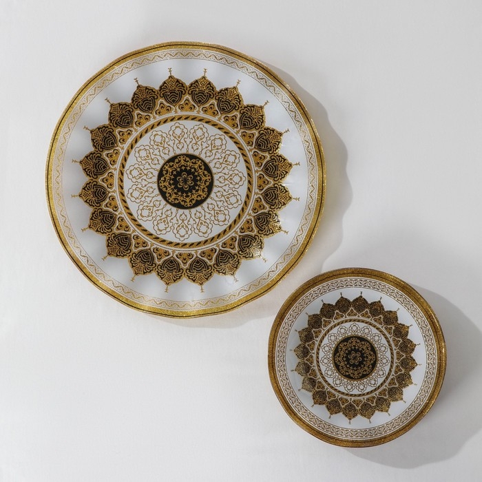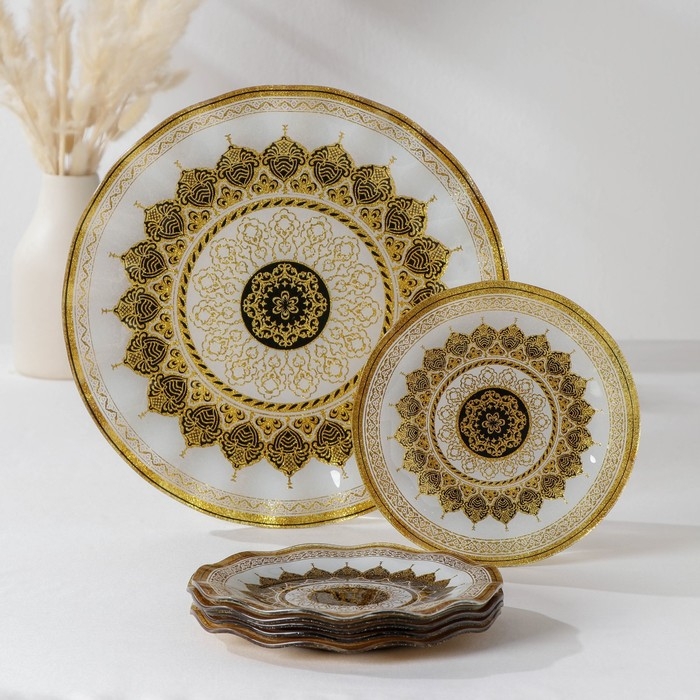 Набор столовый «Мехенди», 7 предметов: d=30 см - 1 шт, d=18 см - 6 шт, цвет белый с золотым