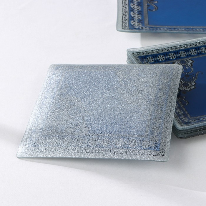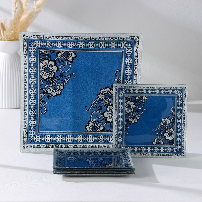 Набор столовый «Украшение», 7 предметов: 30×30 см - 1 шт, 18×18 см - 6 шт, цвет синий