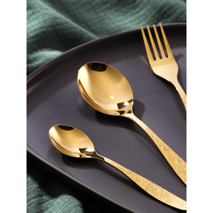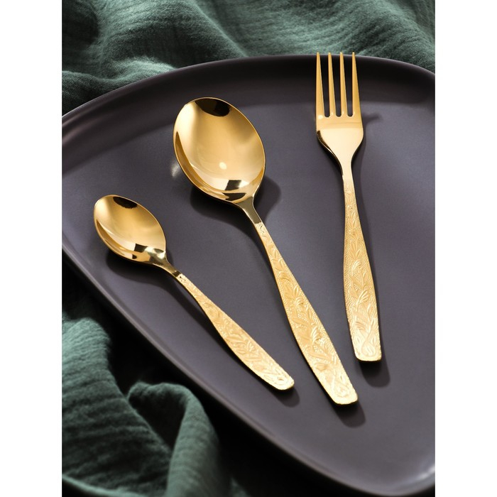 Набор столовый «Уралочка», 18 предметов, с полным декоративным покрытием, цвет золотой