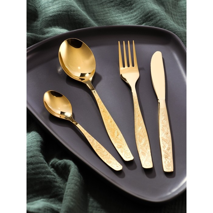Столовые приборы из нержавеющей стали Доляна «Античность», 4 предмета, цвет золотой
