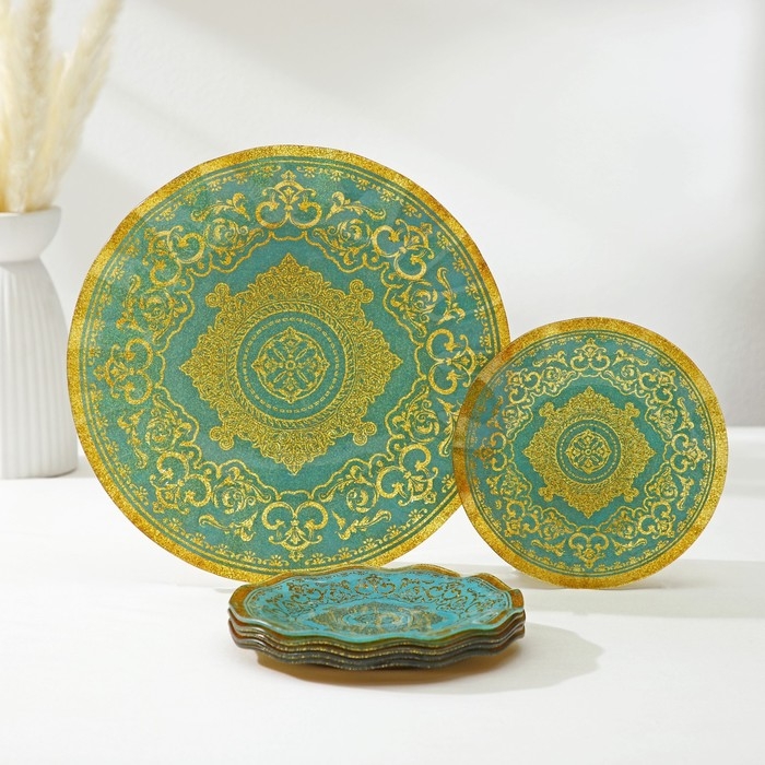 Набор столовый «Виньетка», 7 предметов: d=30 см - 1 шт, d=18 см - 6 шт, цвет золотой, голубой