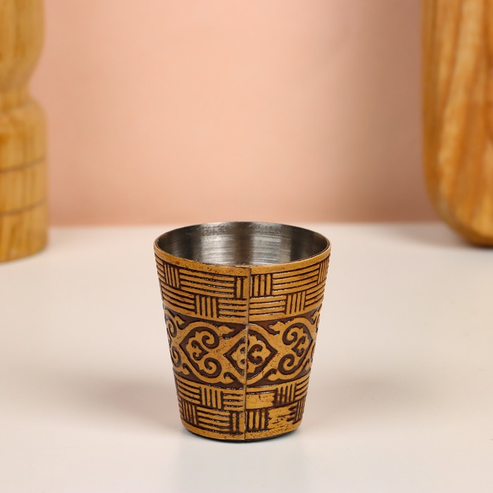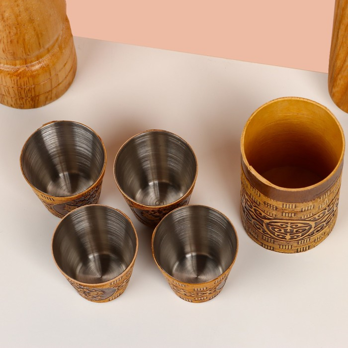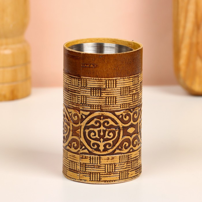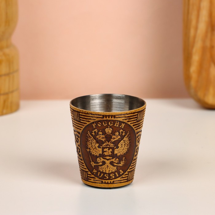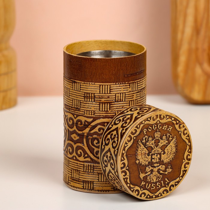 Набор стопок «Герб России», 4 шт, в тубусе, 4,5×4,5×9 см, береста