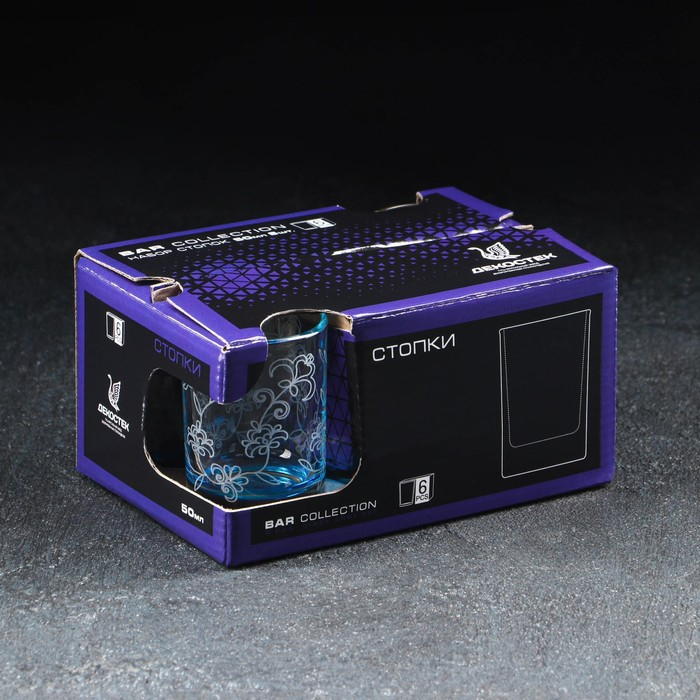 Набор стопок Рrimavera, стеклянный, 6 шт, 50 мл, гравировка, цветное дно