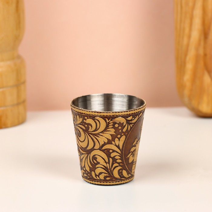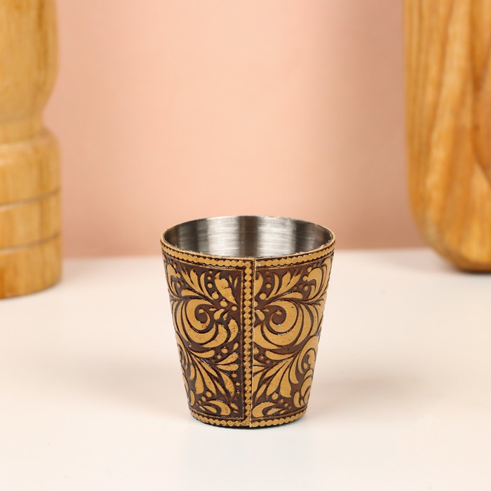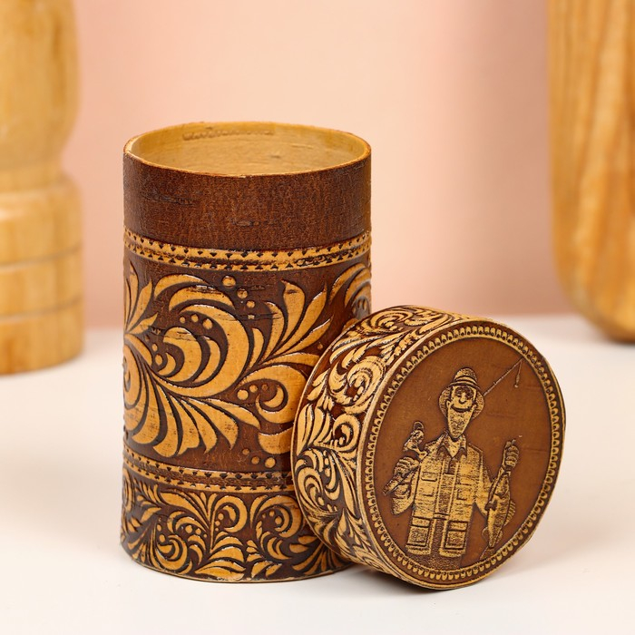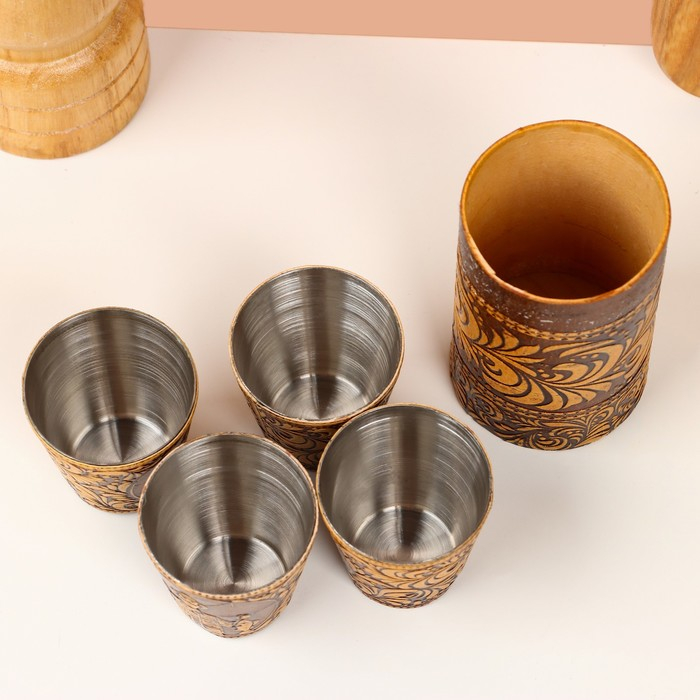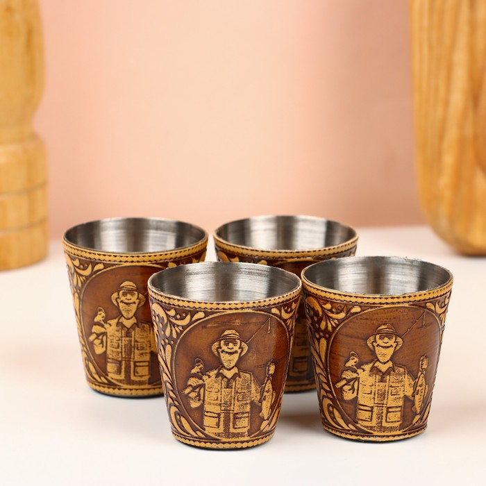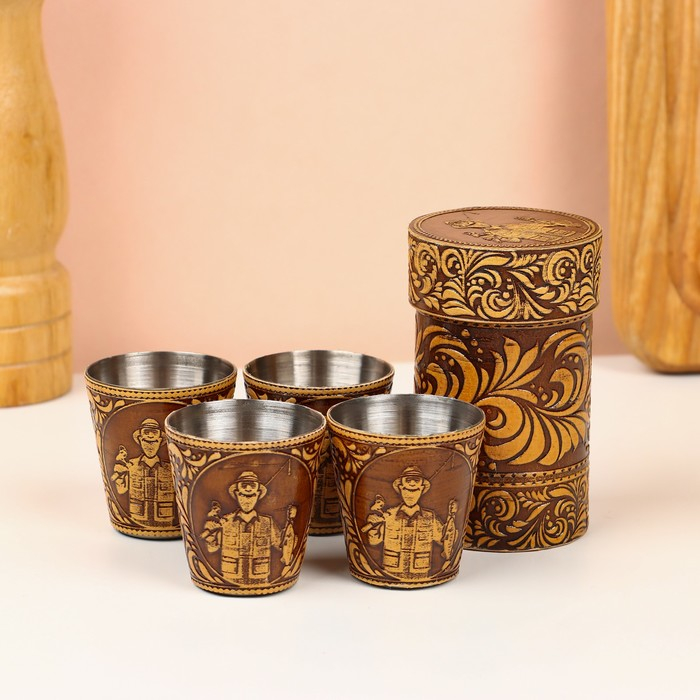 Набор стопок «Рыбак», 4 шт, в футляре, 4,5×4,5×9 см, береста