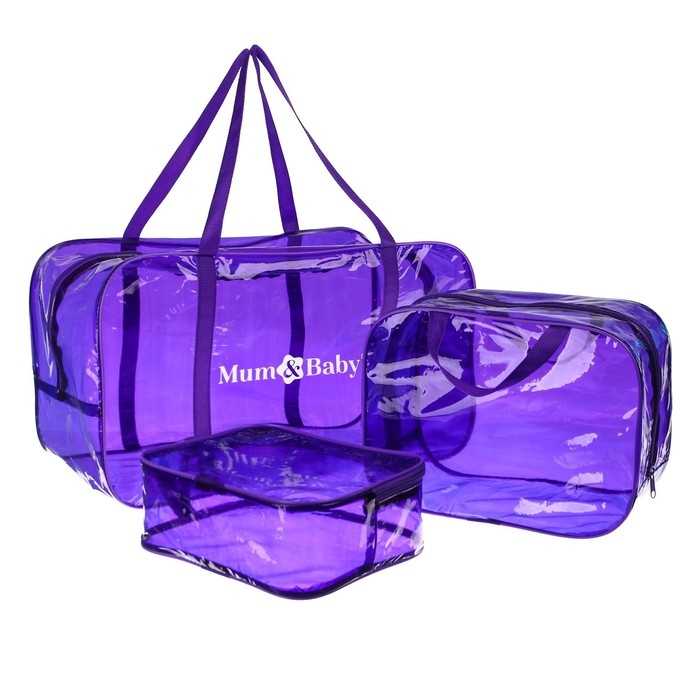 Набор сумок в роддом, 3 шт., цвет прозрачный/фиолетовый, M&B