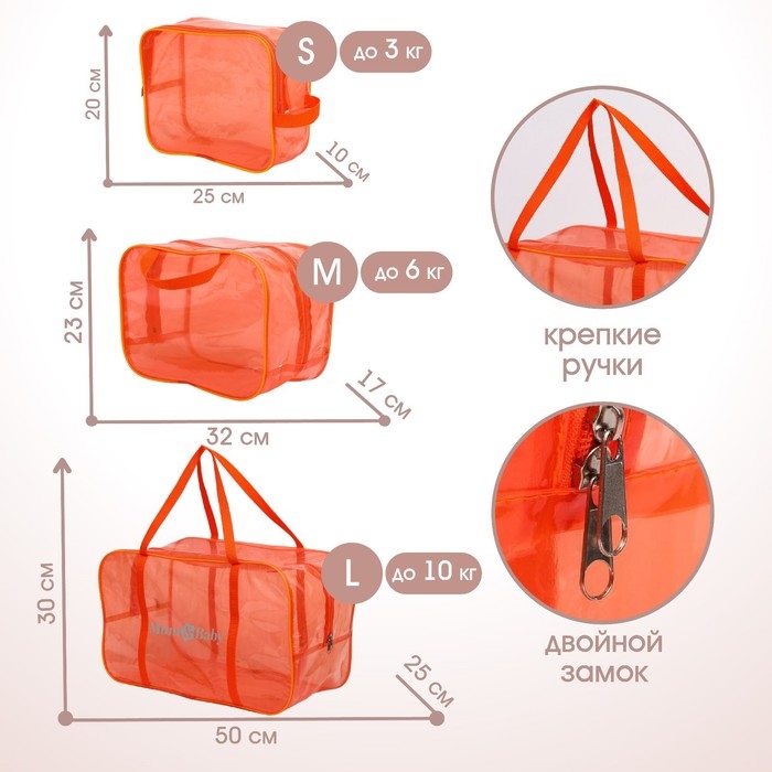 Набор сумок в роддом, 3 шт., цвет прозрачный/оранжевый, M&B
