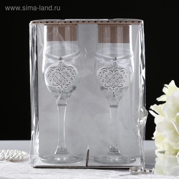 Набор свадебных бокалов "Ажурные", ручной работы, Белый-белый, 6х6х20,5 см, 2 шт.