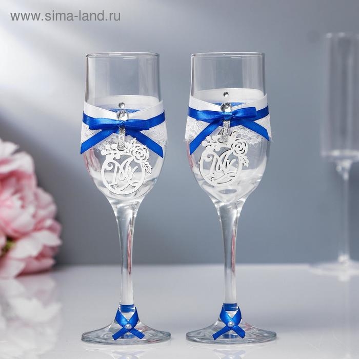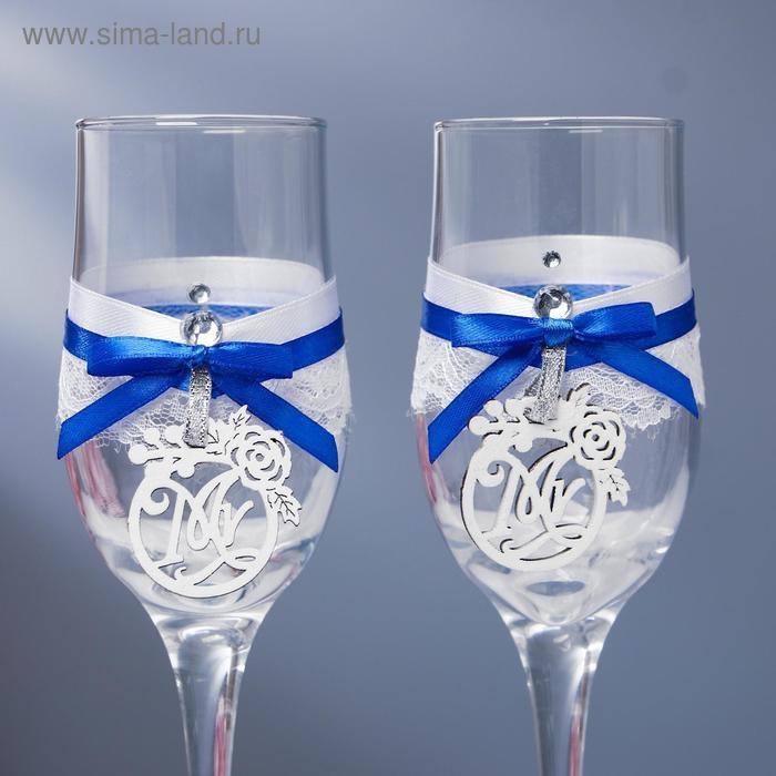 Набор свадебных бокалов "Романтика", ручной работы, синий-серебро, 6х6х20,5 см