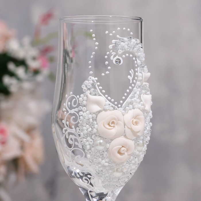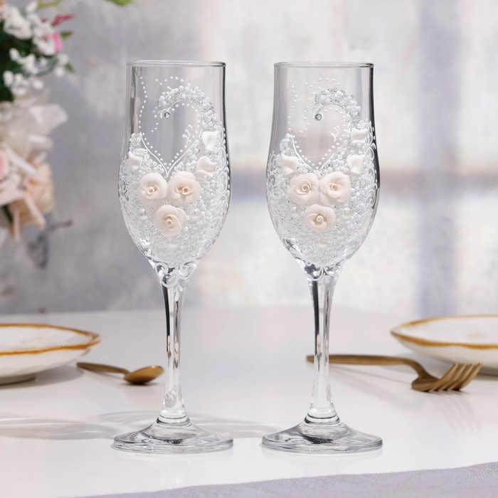 Набор свадебных бокалов "Шик", с розочками, белый
