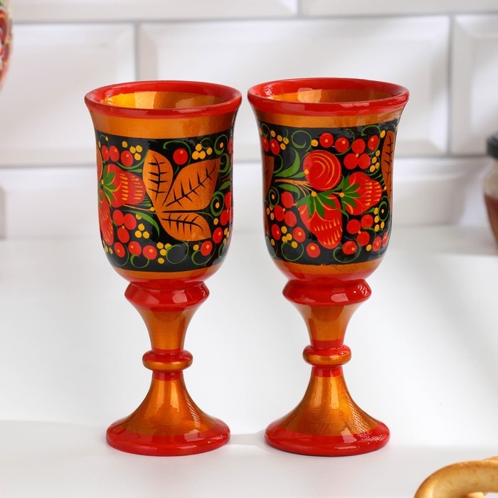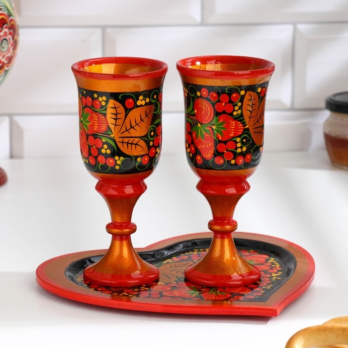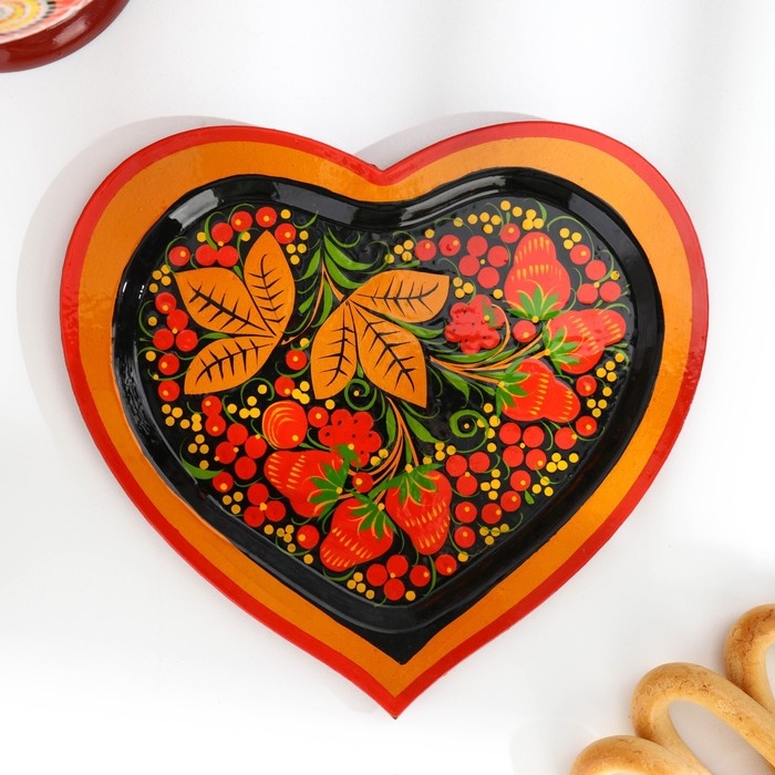 Традиционные элементы Хохломы — ягоды рябины и земляники, цветы и листья, птицы, рыбы и звери.