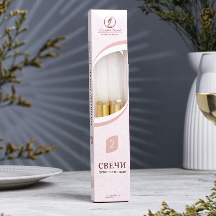 Набор свечей античных, 2,3х 24,5 см, 5 ч, 55 г, 2 штуки, золотисто-белый