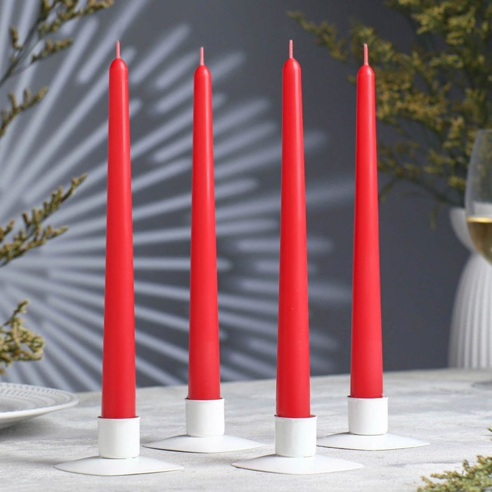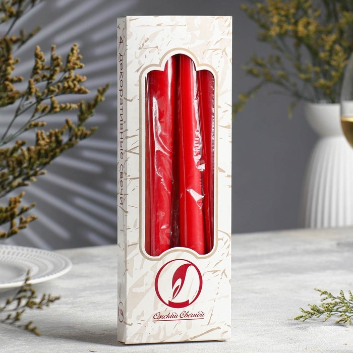 Набор свечей античных, 2,3х 24,5 см, 5 ч, 55 г, 4 штуки, красный