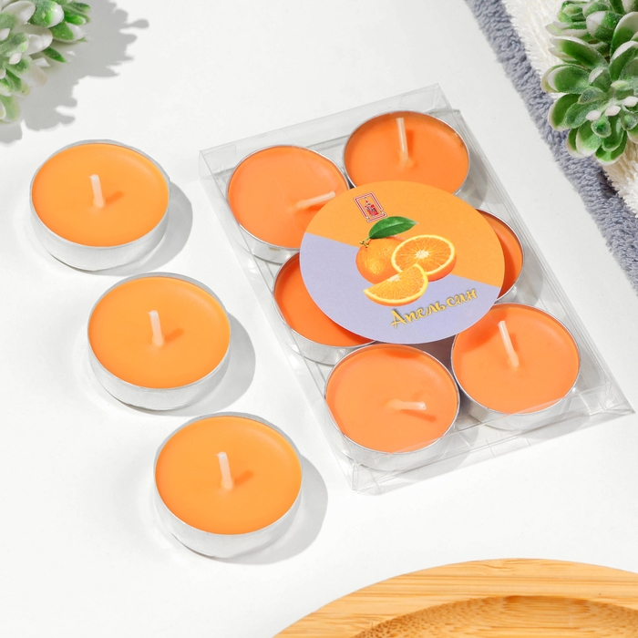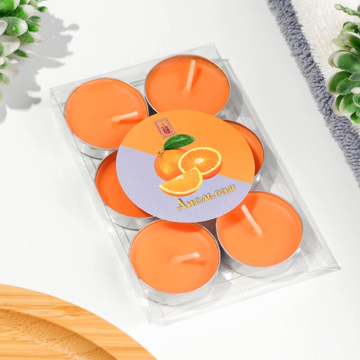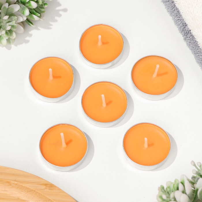 Набор свечей чайных ароматических, 6 шт, апельсин
