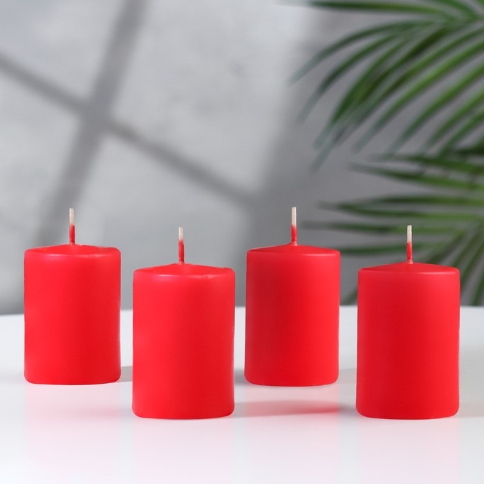 Набор свечей-цилиндров "Интерьерный", 4 шт, 6х4 см, 10 ч, красный