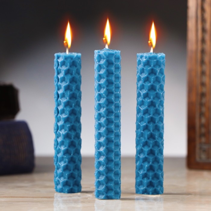Набор свечей из вощины "Спокойствие и достижение целей" , 3 шт, 8х1,7 см, 45 мин, синий