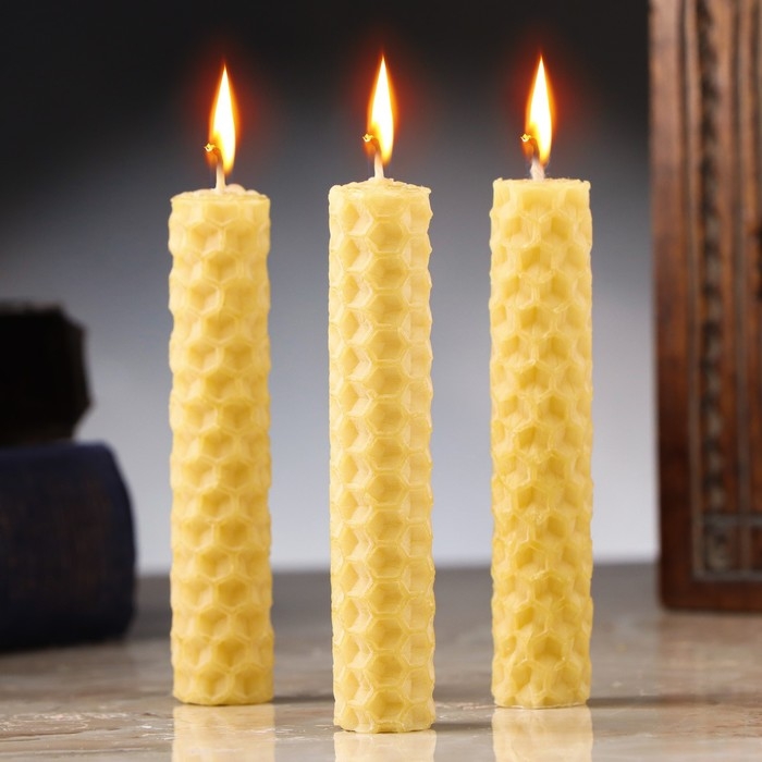 Набор свечей из вощины "Усиление силы воли" , 3 шт, 8х1,7 см, 45 мин, желтый