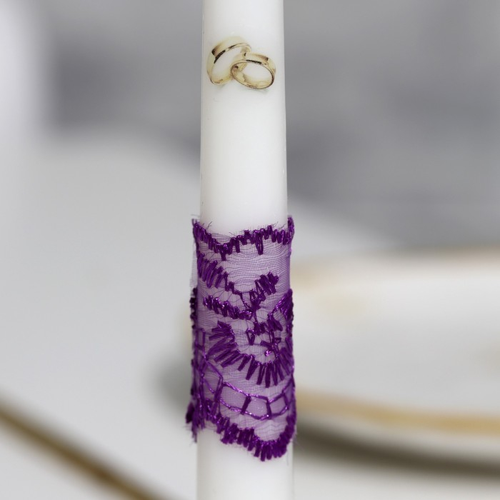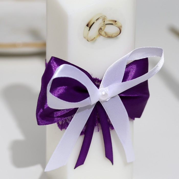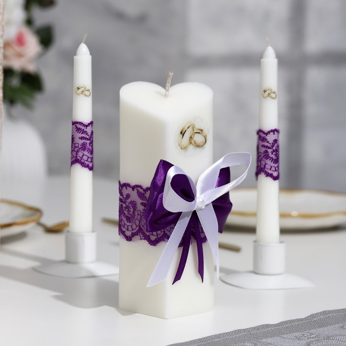 Набор свечей "Кружевной с бантиком"фиолетовый:домашний очаг 6,8х15см,родительские 1,8х17,5см