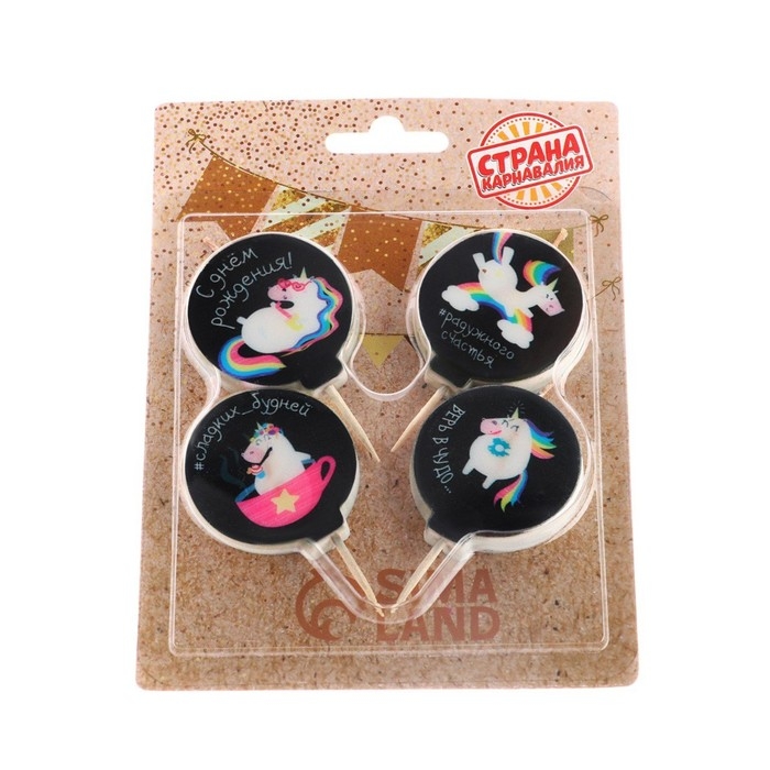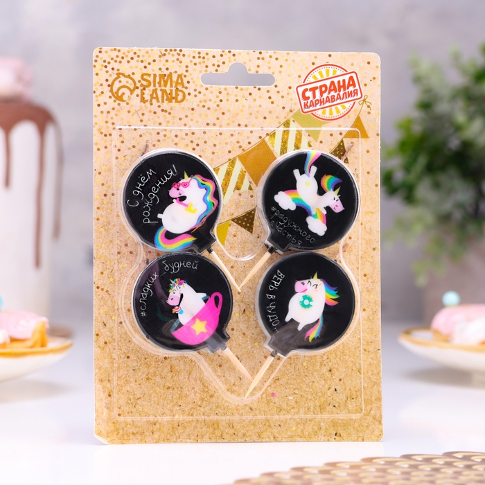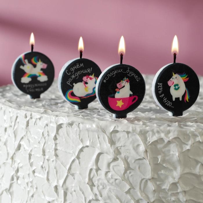 Набор свечей в торт "Единорожки с надписями", 4×4,4см, 4 шт