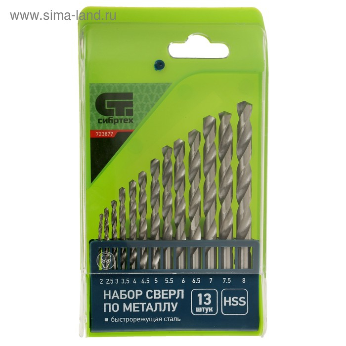 Набор сверл по металлу "СИБРТЕХ", 2 - 8 мм, HSS, цилиндрический хвостовик, 13 шт