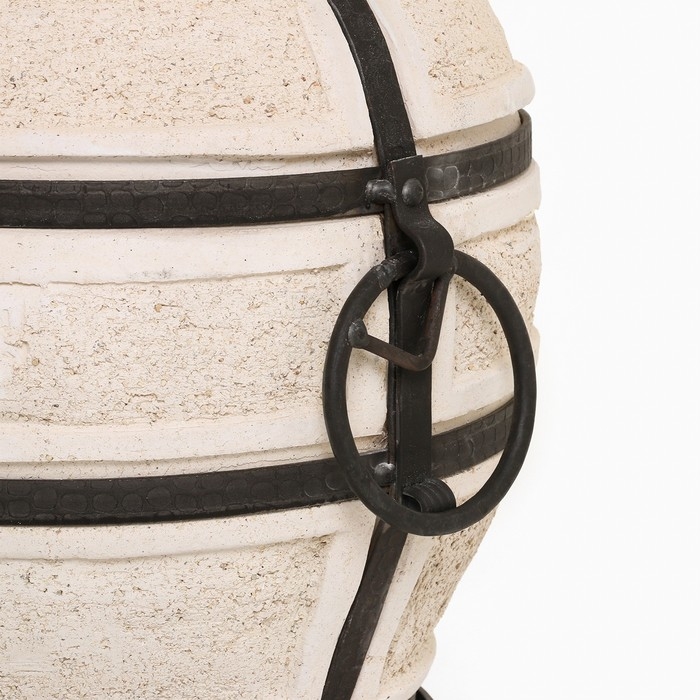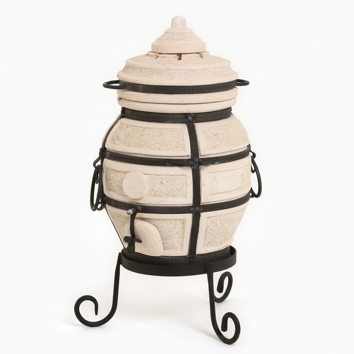 Это компактная модель: высота составляет 67 см, а диаметр – 42. Тандыр изготовлен из шамотной глины и имеет толстые 5-сантиметровые стенки. За счет этого даже от маленькой вязанки дров жара хватит для приготовления большого количества еды. Стенки устойчивы к механическим ударам и высокой температуре.