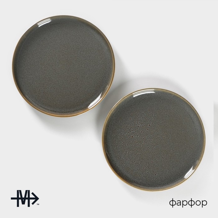 Набор тарелок фарфоровых десертных Magistro Fog, 2 предмета: d=20 см, цвет серый