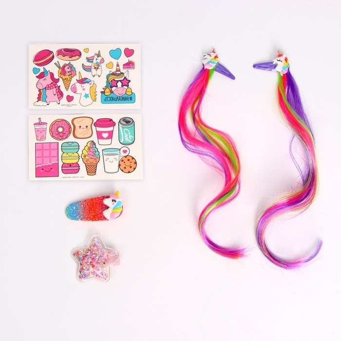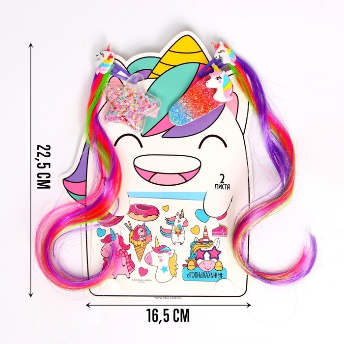 Бьюти-набор понравится каждой девочке. Внутри малышка найдёт лист с тату-переводками и модные аксессуары для волос.
