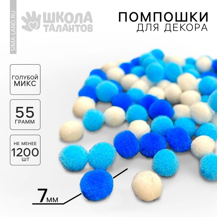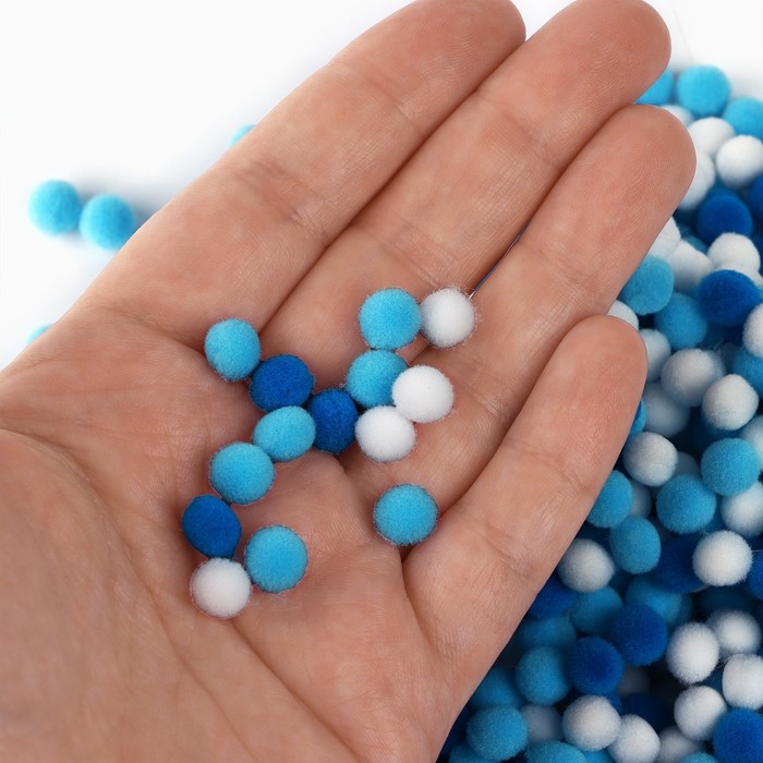 Набор текстильных деталей для декора. Помпоны для творчества «Голубые Микс», 55 гр