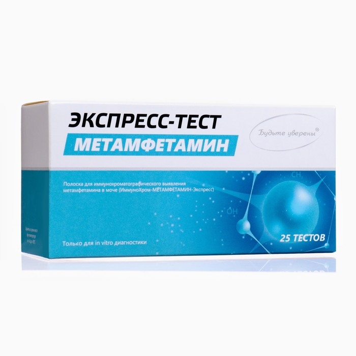 Тест-полоска «ИммуноХром-МЕТАМФЕТАМИН-Экспресс» поможет обнаружить токсическую дозу приема метамфетамина и его производных — 500 нг/мл при тестировании по моче и 300 нг/мл при определении в порошках или растворах, по смывам с рук или одежды. Тест на метамфетамин также входит в комплексную тест-систему «Мульти-5», диагностирующую пять видов психостимуляторов — амфетамин, марихуану, морфин, кокаин и метамфетамин.