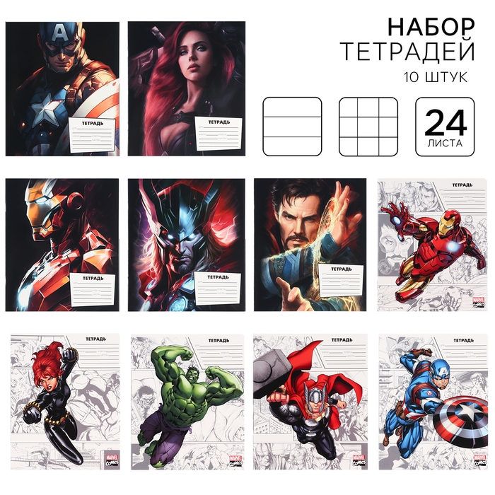Набор тетрадей 10 штук, 24 листа, 1 сентября, Мстители