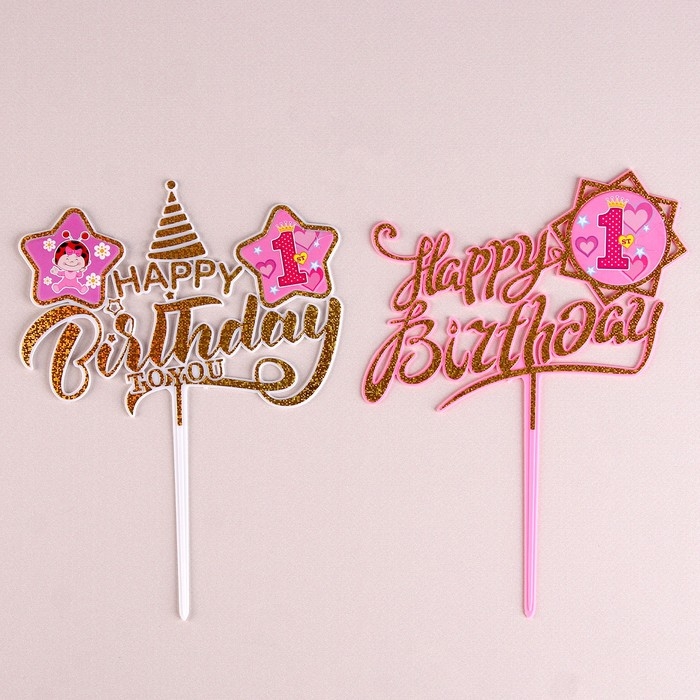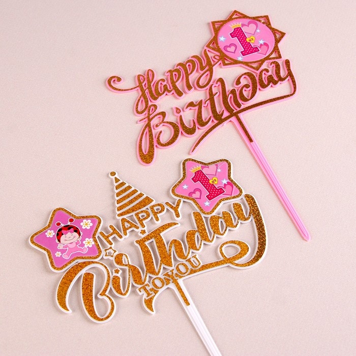 Набор топперов «С днём рождения», 1 год, для девочки, 2 штуки
