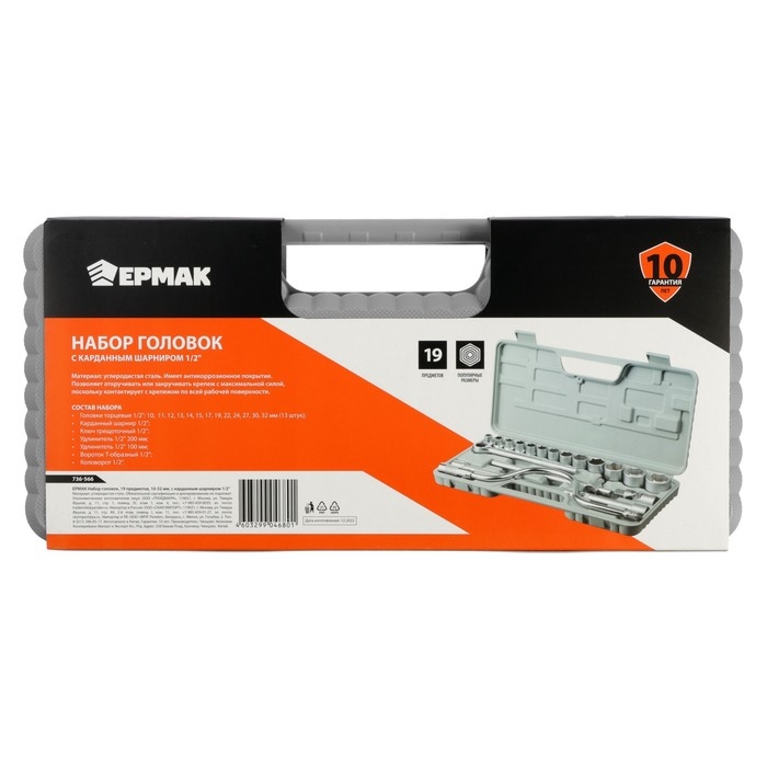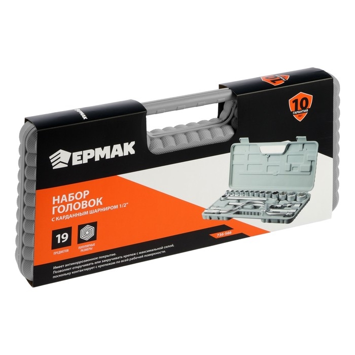 Набор торцевых головок ЕРМАК 736-566, с воротками, 1/2", 10 - 32 мм, 19 предметов