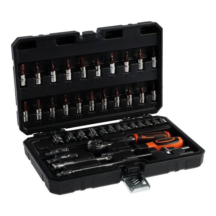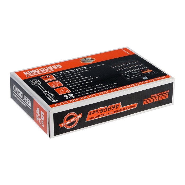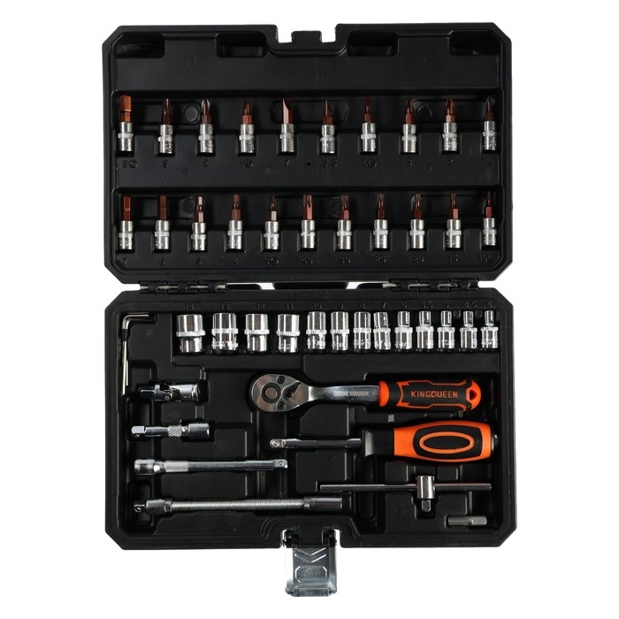 Набор торцевых головок и бит KINGQUEEN WIB-10007, трещотка 72 зуба, 1/4", 46 предметов