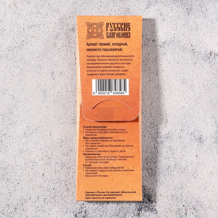 Набор традиционных русских благовоний "Таёжная ель", 7шт + подставка
