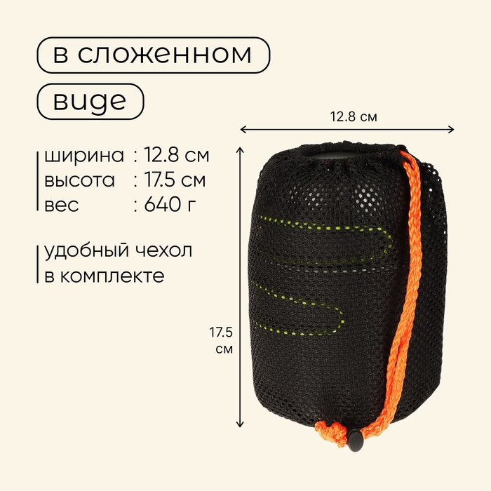 Набор отлично подходит для походов, благодаря компактным размерам. Все приборы складываются в аккуратный комплект и помещаются в сетку-переноску.