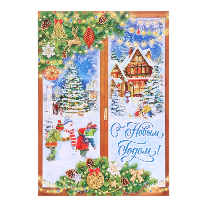 Набор украшений из картона на подставках "С Новым Годом!" 5 деталей, 21,5 х 30 см