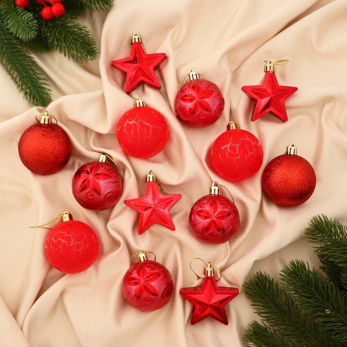 Набор украшений пластик 13 шт "Мелодия" звезда, 6 см, красный