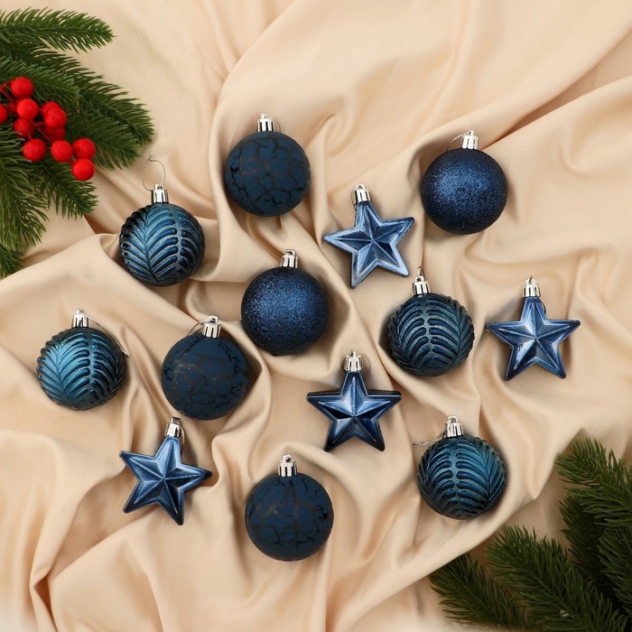 Набор украшений пластик 13 шт "Мелодия" звезда, 6 см, синий