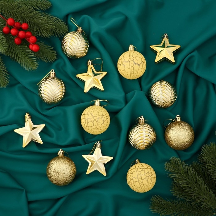 Набор украшений пластик 13 шт "Мелодия" звезда, 6 см, золото