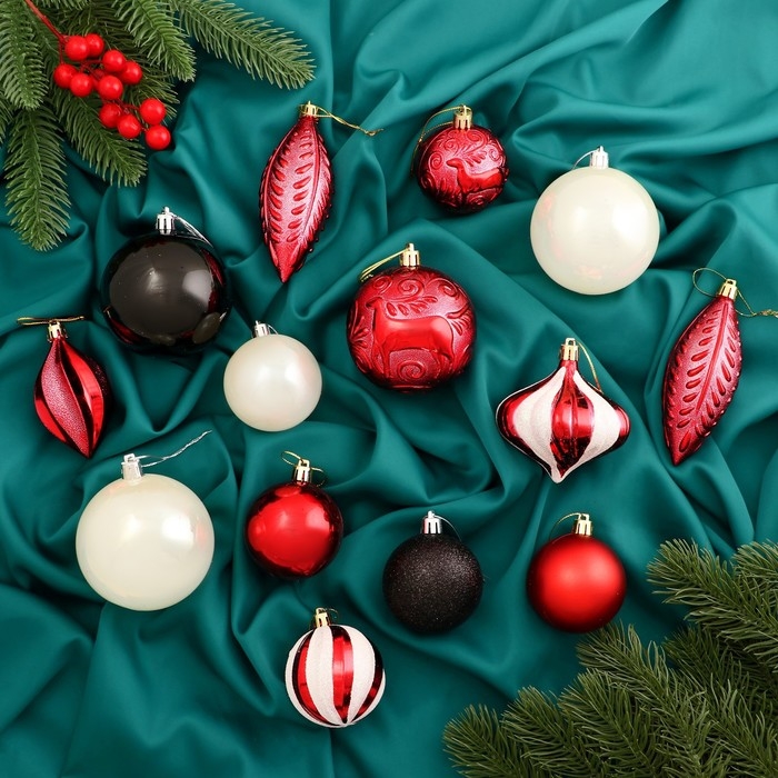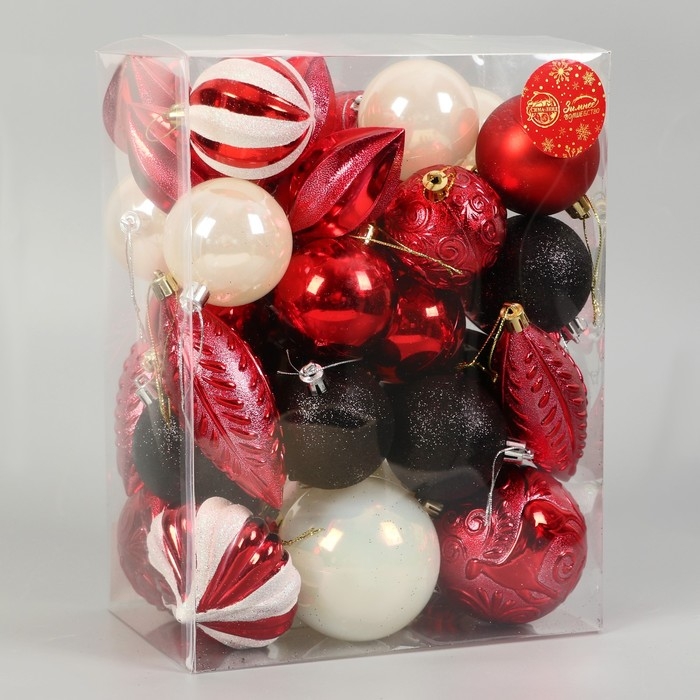 Набор украшений пластик 36 шт "Праздничное настроение" красный, микс