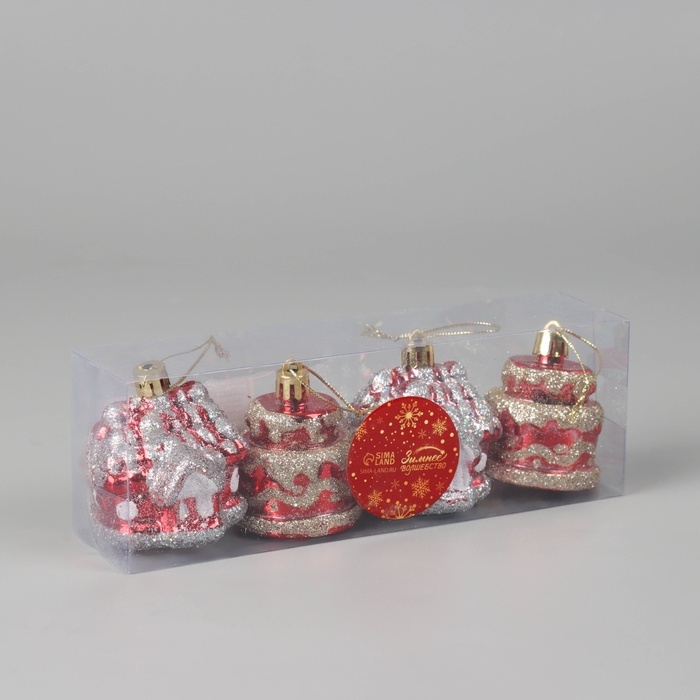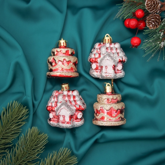 Набор украшений пластик 4 шт "Карнавальный" (2 домика, 2 тортика) 7х5 см, красный