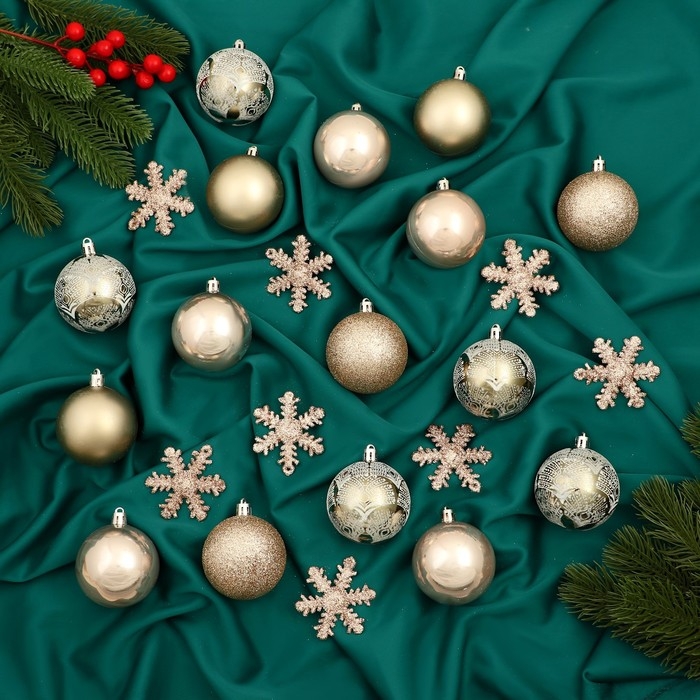 Набор украшений пластик 40 шт "Снежная феерия" шёлк, d-6 см, снежинка 6 см,