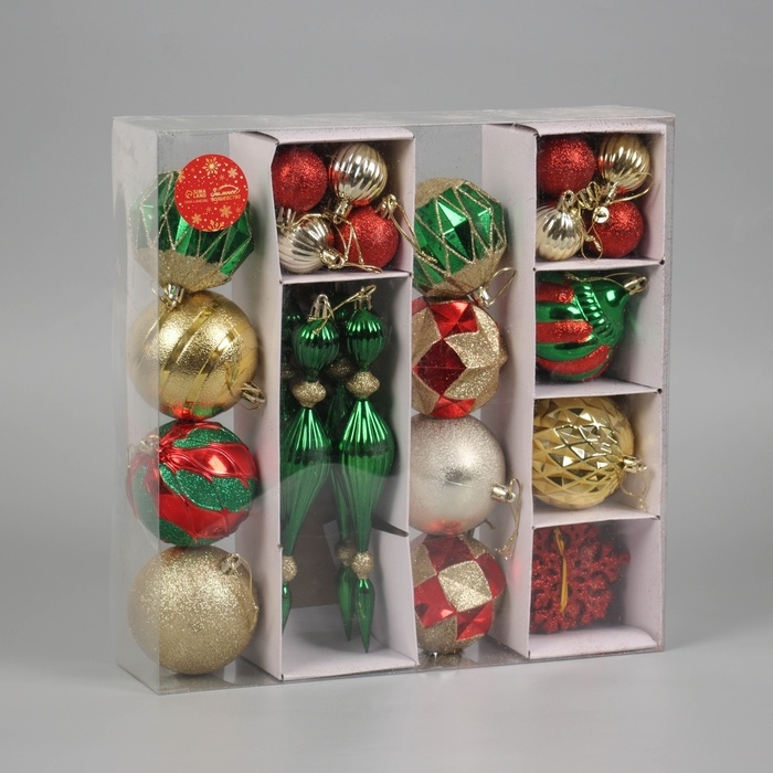 Набор украшений пластик 42 шт "Карнавал ассорти" красный зелёный