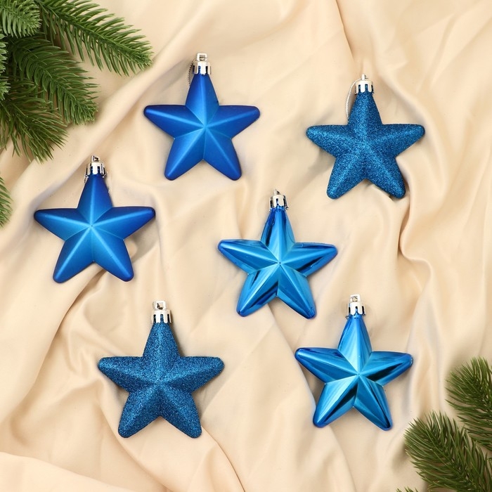 Набор украшений пластик 6 шт "Звездопад" 8 см, синий